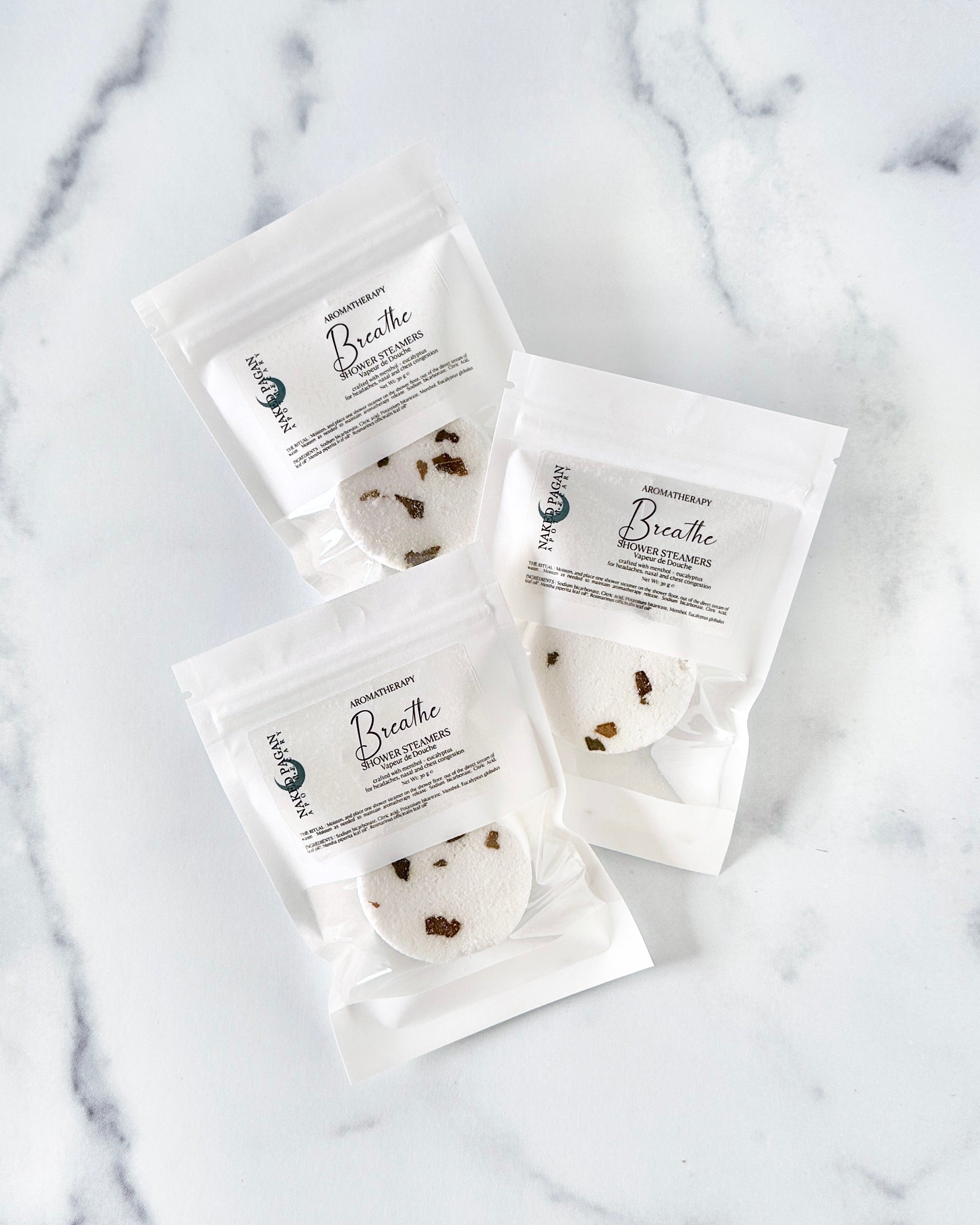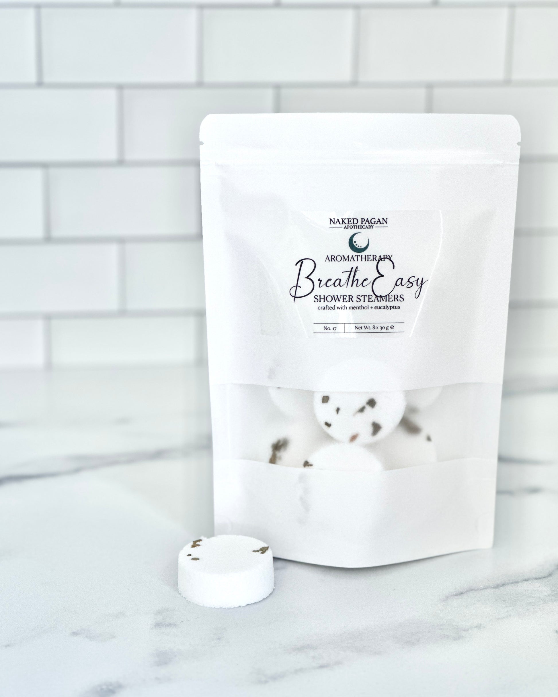 With our Breathe Easy Shower Steamer, you can transform your daily shower routine into a spa-like experience. Our Breathe Easy blend contains menthol + an essential oil blend chosen to help ease headaches and nasal + chest congestion. As the steam envelopes your senses, the powerful combination of oils works harmoniously to clear your airways, helping you to breathe more freely and deeply.