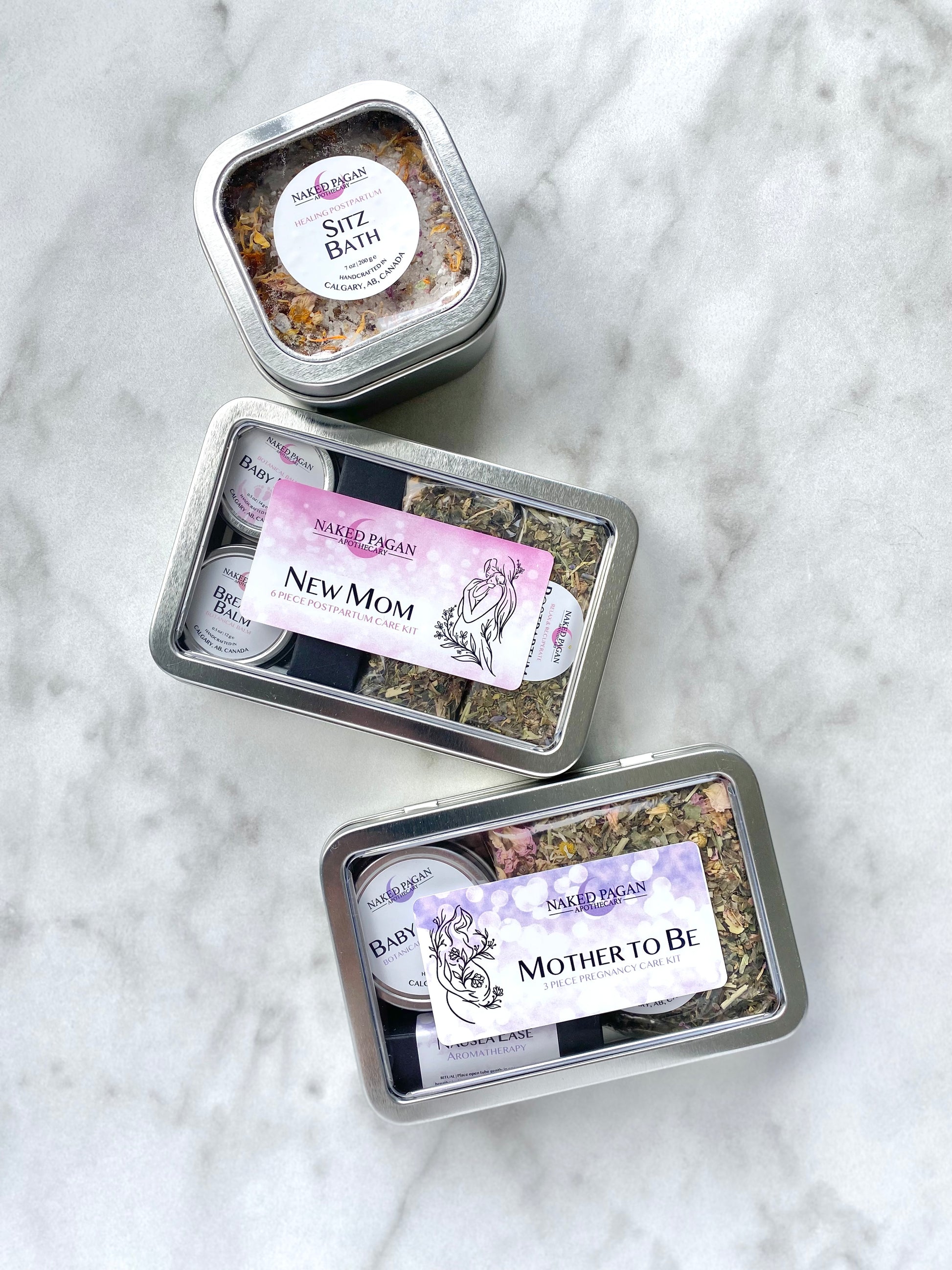 Our Mother To Be Care Kit is packaged in a 5.5"x3.6"x1" tin and the perfect gift for expecting mothers and for baby showers. We use potent organic herbs and oils so although some items may seem a little small at first, a little goes a long way. We do however offer all of these items in larger sizes, should our lovely ladies require more.