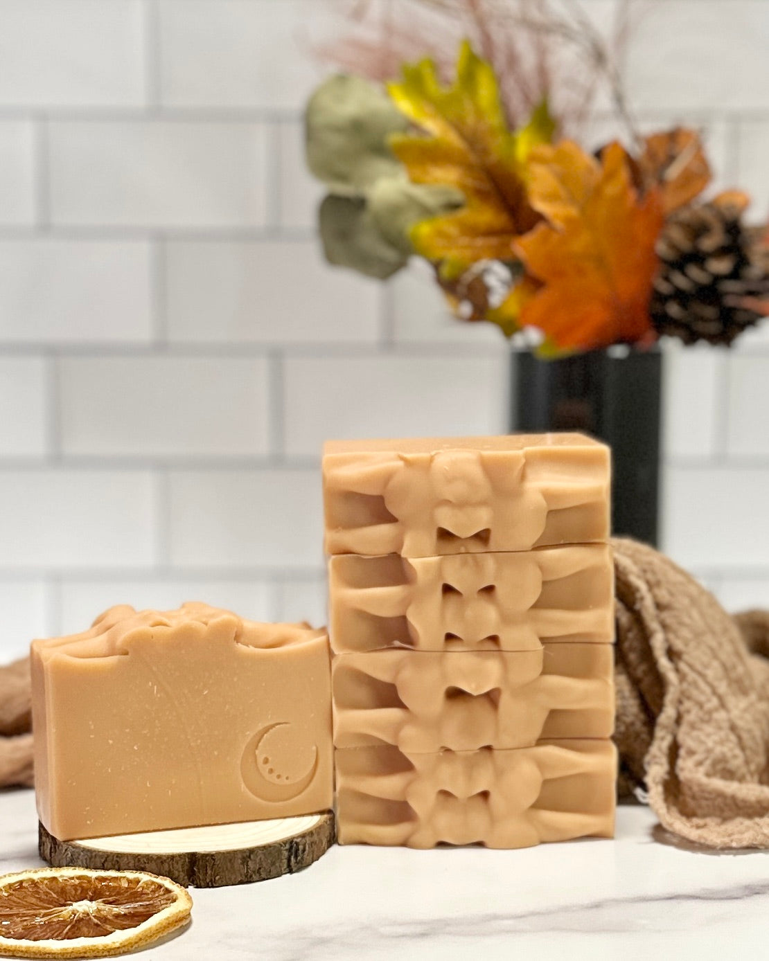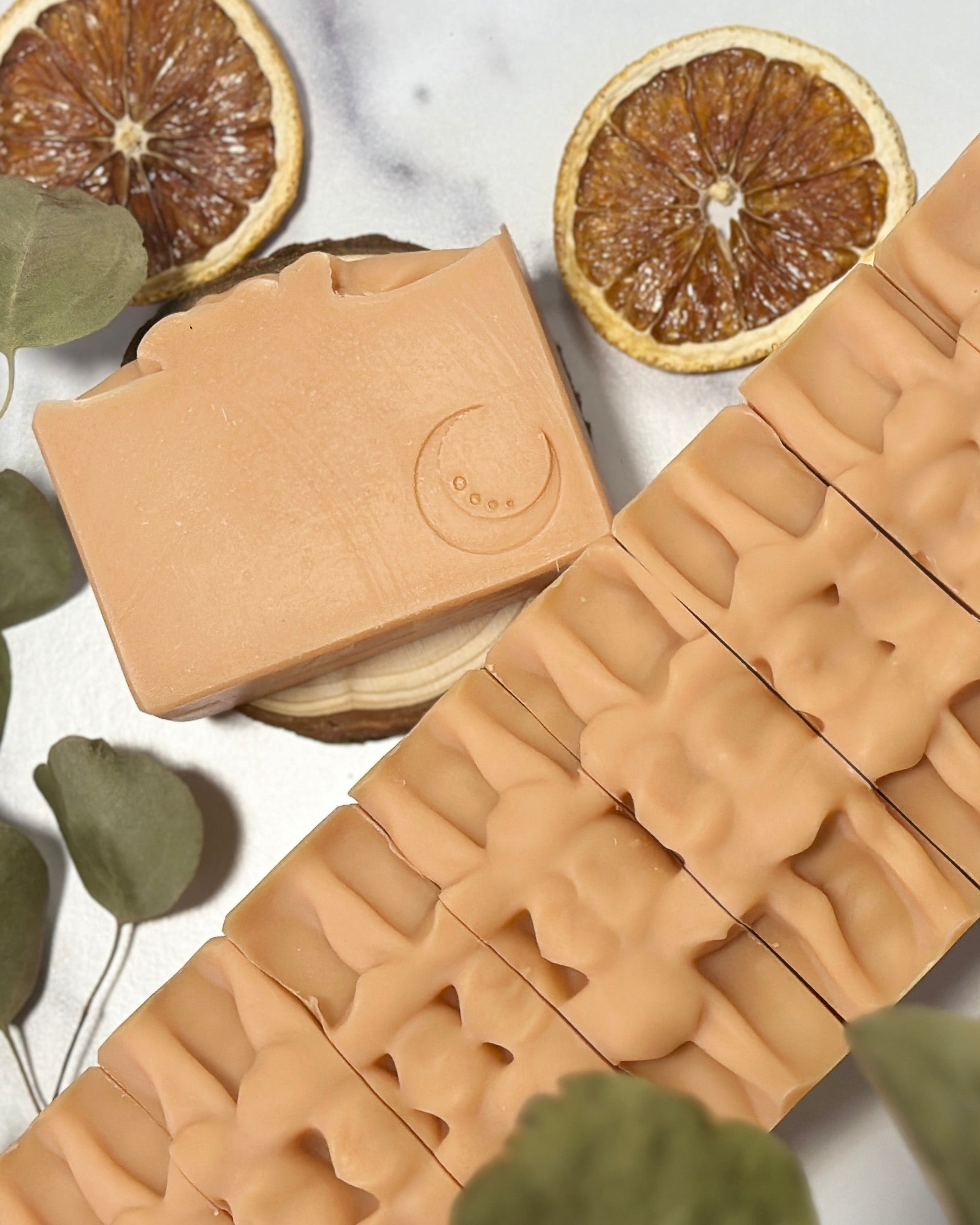 This is a classic orange patchouli soap, which is heavier on the orange than the patchouli. Made with aloe vera, cocoa butter, and a blend of orange + patchouli essential oils. The natural color is from red Brazilian clay.
